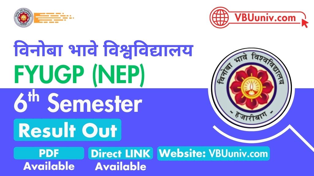 VBU FYUGP Semester 6 Result 2025 – Vinoba Bhave University (VBU), Hazaribagh has officially announced the Semester 6 Result for students enrolled in the Four-Year Undergraduate Programme (FYUGP). If you appeared for the Semester 6 exams, it’s time to check your results and see how you performed!